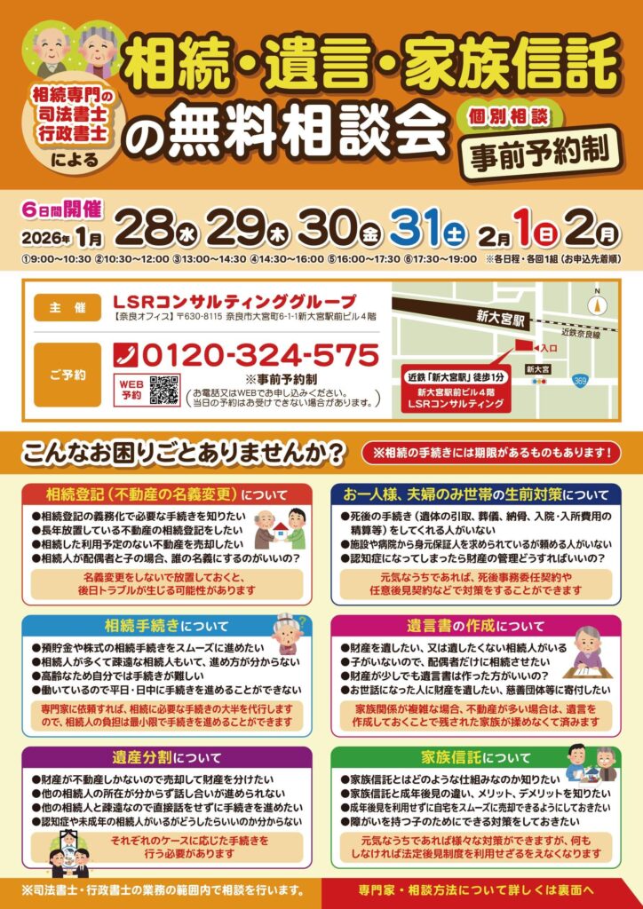 「相続・遺言・家族信託 無料相談会」開催日時・場所
