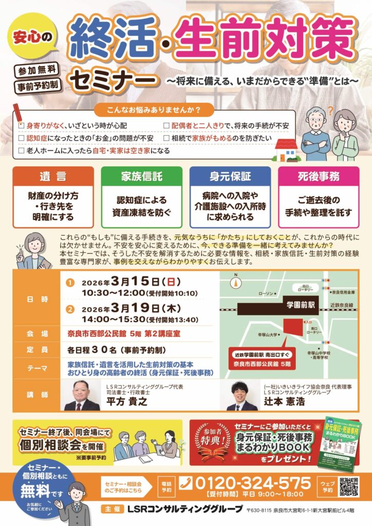 当事務所が主催する終活・生前対策セミナーのご案内です。