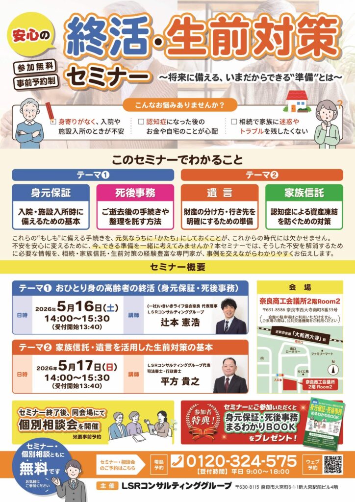 当事務所が主催する終活・生前対策セミナーのご案内です。